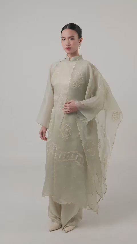 Embroidery Outer, Satin Inner, Satin Pants, Organza Shawl